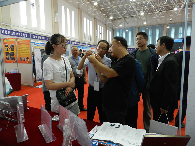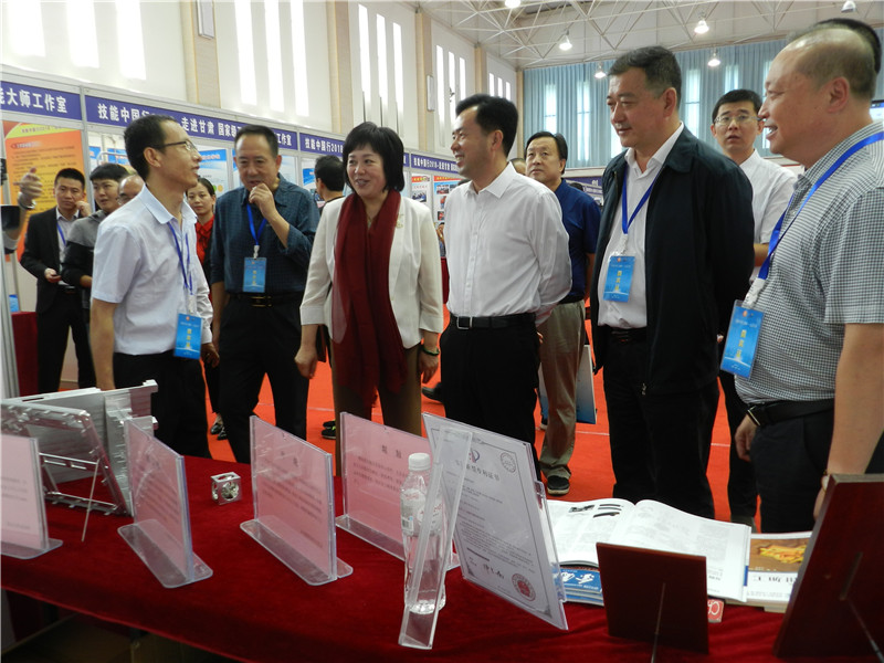 在学院院长梁惠明和副院长王飙陪同下,国家人力资源和社会保障部职业能力建设司司长张立新,甘肃省人力资源和社会保障厅副厅长王丽萍,天水市政府副市长逯克宗,中国就业培训技术指导中心党委副书记刘文彬等与会领导和嘉宾驻足参观了我院国家级高技能人才培训基地展台及孙耀恒国家级大师工作室参展作品,与会领导饶有兴趣地向工作人员询问。孙耀恒详细介绍了通过逆向工程技术加工完成的汽车增压叶轮 等参展作品的做工工艺和核心技术。
